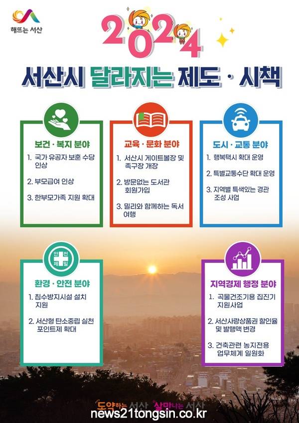 충남 서산시가 2024년을 맞이해 ‘2024년 새롭게 시행·변경되는 제도 및 시책’을 모아 공개했다.