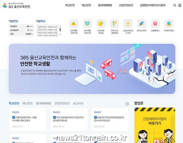 (뉴스21통신/우정석기자) = 울산광역시교육청(교육감 천창수)이 최근 학교안전통합시스템 ‘365 울산교육안전’(https://use.go.kr/edusafe)을 구축해 개통했다.