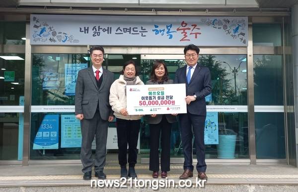 (뉴스21통신/우정석기자) = S-OIL 울산공장이 10일 울주군 온산읍 행정복지센터에서 지역 복지위기가구 및 저소득 취약계층 지원을 위한 후원금 5천만원을 전달했다.