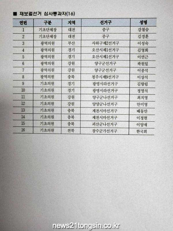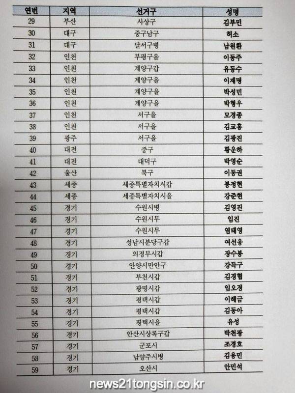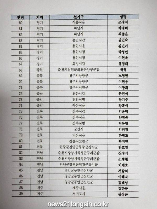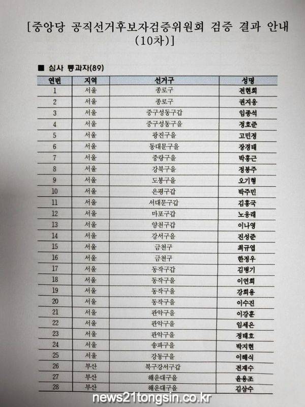 공직선거후보자 검증위원회 검증 결과(10차) 명단이 공개되었다.