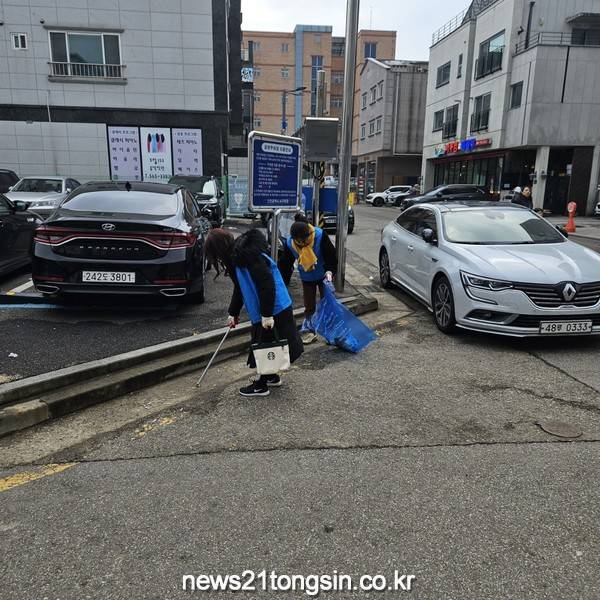 통장자율회는 학교 근처 통학로 및 상가 주변에서 담배꽁초, 1회용 음료수컵 등 생활쓰레기를 중점적으로 정비했다.