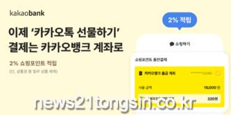 카카오뱅크(대표이사 윤호영, Daniel)는 12일 카카오뱅크 계좌가 ‘카카오톡 선물하기(이하 선물하기)’와 ‘카카오톡 쇼핑하기(이하 쇼핑하기)’ 결제 수단으로 추가됐다고 밝혔다.