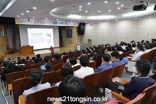 김대원 적정의료관리실장은 “환자 의료의 질 향상을 위해 실시하는 환자경험평가를 원활하게 마친 교직원들의 힐링을 위해 자신의 삶을 돌아보고 함께 사는 세상을 위해 필요한 고민과 해답을 찾고자 오늘 특강을 마련했다”고 말했다.