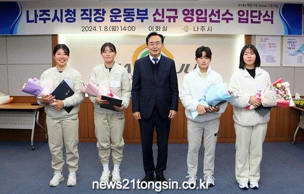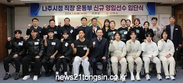 [뉴스21통신 박찬웅 기자] 전라남도 나주시(시장 윤병태)는 최근 시청사 이화실에서 2024년 나주시청 직장운동부 사이클, 육상팀의 신규 및 재계약 선수 입단식을 가졌다고 11일 밝혔다.