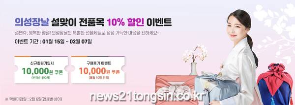 의성군은 설 명절을 앞두고 1월 15일부터 2월 7일까지 24일간 의성군 대표 농·특산물 쇼핑몰인 ‘의성장날(https://esmall.cyso.co.kr)’에서 설 명절 특별이벤트를 실시한다고 밝혔다.