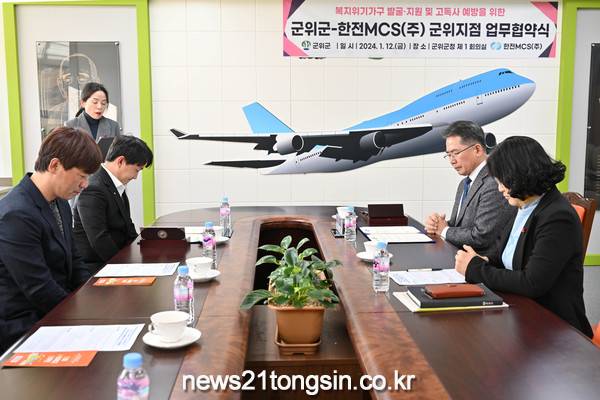군위군과 한전MCS(주) 군위지점(지점장 김진영)은 1월 12일 군청 제1회의실에서 복지위기가구 발굴·지원 및 고독사 예방을 위한 업무협약을 체결했다.