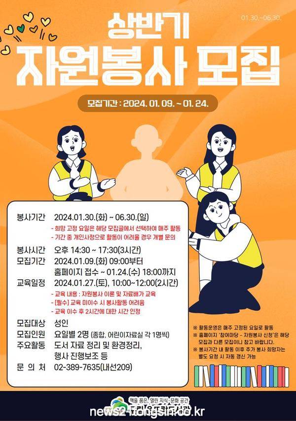 자원봉사자는 은뜨락도서관 누리집에서 상반기 모집을 받고 있으며, 은평구민 중 성인이면 누구나 신청할 수 있다.