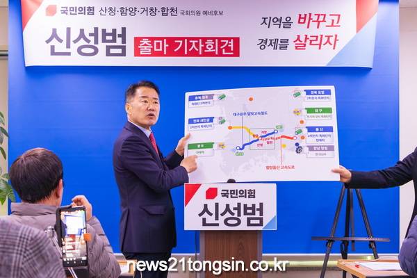 신성범 전 국회의원이 15일 국민의힘 경남 산청·함양·거창·합천 선거구 출마를 공식선언하면서 “지역이 위기라고 하면서도 전혀 준비된 모습이 없는 것을 보며 안타까움에 가슴을 친 적이 한 두 번이 아니었다”며 “산청·함양·거창·합천의 정치와 미래를 바꿀 기회를 달라”며 호소했다.