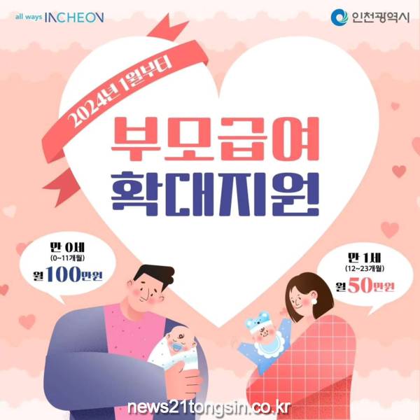 인천광역시는 민선8기 공약과 정부 국정과제에 맞춰 올해 1월부터 0세와 1세 아동 부모에게 지원하는 부모급여를 대폭 확대한다고 밝혔다.