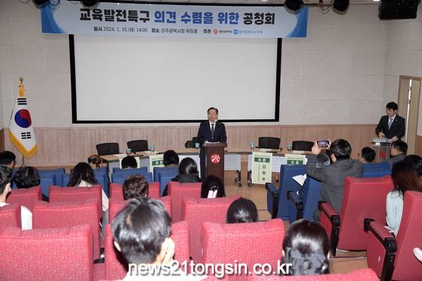[뉴스21통신/장병기 기자] 광주광역시(시장 강기정)는 광주광역시교육청(교육감 이정선)과 함께 16일 시청 무등홀에서 ‘교육발전특구 공모사업 공청회’를 열어 광주형 교육발전특구 개발에 앞서 각계 의견을 수렴했다.