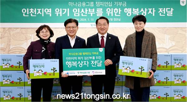 인천광역시장 유정복은 하나금융그룹 회장 함영주가 15일 인천지역 위기임산부를 위해 인천자모원, 여성인권 동감에 기부금 7천만원을 전달했다고 밝혔다.