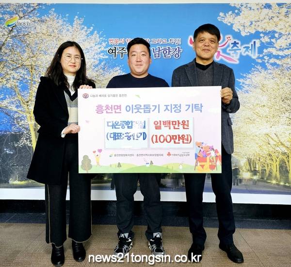 지난 15일 여주시 소재 다온종합건설에서 흥천면행정복지센터에 이웃돕기 성금 100만원을 기탁하였다.