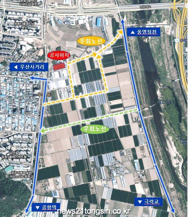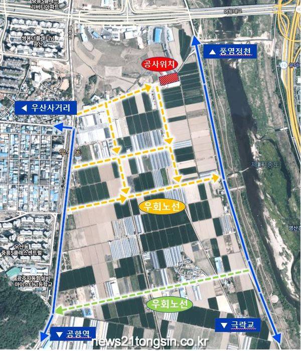 [뉴스21통신/장병기 기자] 광주광역시상수도사업본부는 18일부터 광산구 우산동 화훼관광단지 인근 도로에서 ‘노후 송수관로 개량공사’를 실시한다. 이로 인해 일부 도로가 통제돼 교통혼잡이 예상되는 만큼 우회해줄 것을 당부했다.