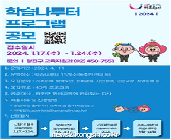 김경호 구청장은 "구민 의견을 반영해 양질의 평생 학습 계기를 제공하고자 공모를 진행하고 있으며, 많은 구민이 배움의 즐거움을 누릴 수 있도록 평생학습 활성화에 최선을 다하겠다."고 말했다.