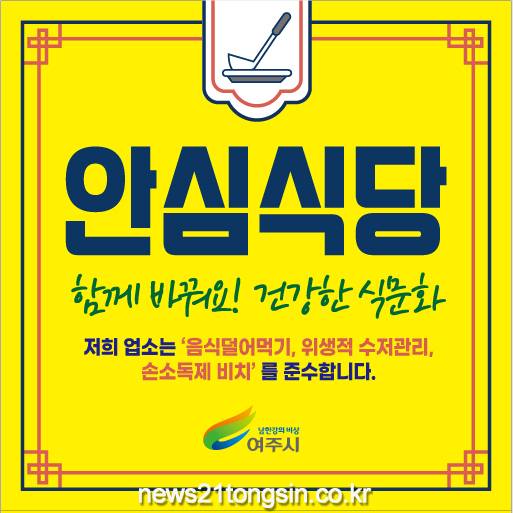 여주시보건소는 감염병 및 식중독을 방지하여 위생적이고 선진화된 식문화 보급 확산을 위하여 2020년부터 현재까지 58개소의 안심식당을 정해 운영하고 있다.