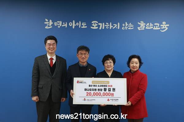 (뉴스21통신/우정석기자) = 울산시 동구 하나유치원 황길현 원장이 19일 울산광역시교육청(교육감 천창수)에 저소득층학생을 위한 장학금 2,000만 원을 전달했다.
