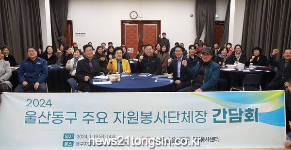 (뉴스21통신/임정훈기자) = 사)울산동구자원봉사센터(이사장 이순자)는 1월 19일 오후 2시 동구자원봉사센터 대강당에서 동구지역 주요 자원봉사단체장들과 주요 내빈들 60여명이 참석한 가운데 ‘2024 울산동구 주요 자원봉사단체장 간담회’를 개최했다.