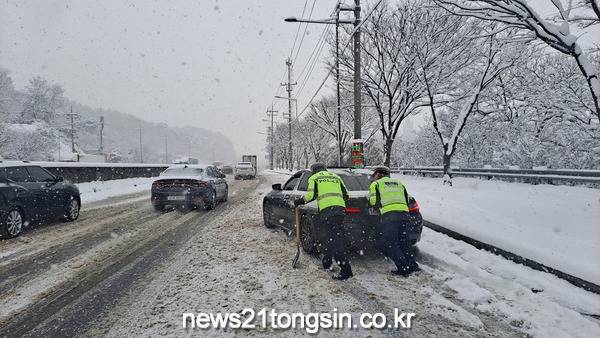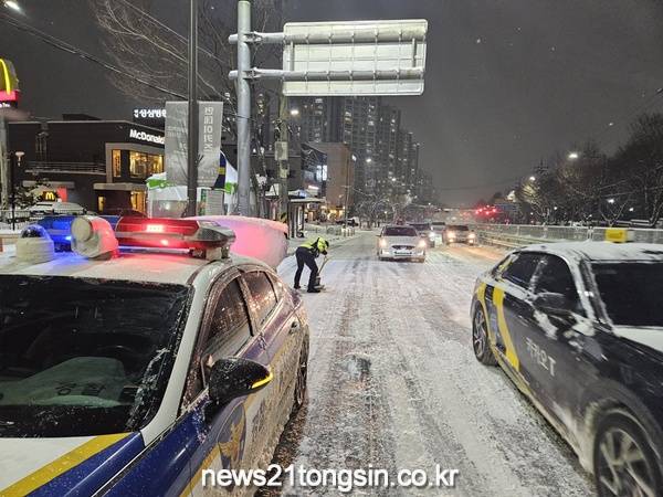 [뉴스21통신/장병기 기자] 광주광산경찰서(서장 강일원)는 이틀째 내린 폭설로 인한 교통사고와 교통불편을 최소화하기 위해 경찰력을 최대 동원해 교통관리를 실시했다.