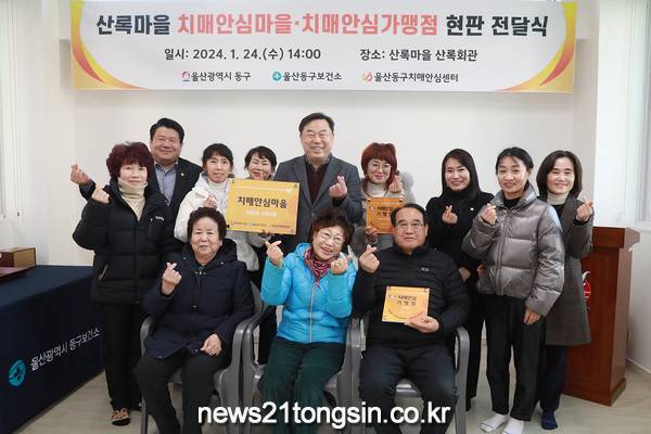 (뉴스21통신/임정훈기자) = 울산 동구보건소는 전하1동 산록마을을 동구 제2호 치매안심마을로 지정하고 1월 24일 오늘오후 2시 산록마을 내 산록회관에서 현판전달식을 개최했다.