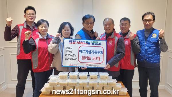 이 날 기부한 밀키트는 ‘한국장류문화사회적협동조합 알콩달콩’에서 지역사회나눔을 위해 할인된 가격으로 제공한 것을 화정동 바르게살기위원회가 자체 성금으로 구입해 ‘화정 사랑나눔 냉장고’에 기부했다.