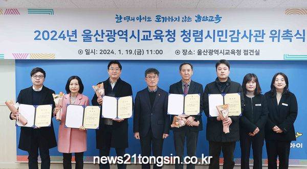 (뉴스21통신/우정석기자) = 울산광역시교육청(교육감 천창수)은 올해 청렴시민감사관을 15명에서 20명으로 확대해 운영한다.