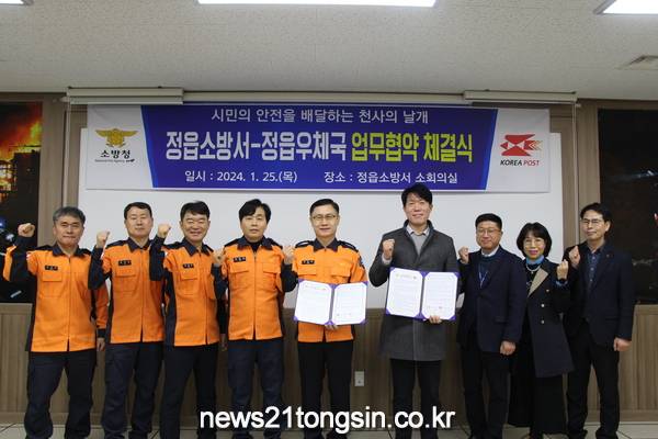 정읍소방서(서장 강봉화)는 25일 취약지역 및 취약계층 또는 정읍시 지역주민에 대한 재난 사고 시 신속한 대처와 구호 실현을 위해 정읍우체국과 업무협약을 체결했다고 밝혔다.