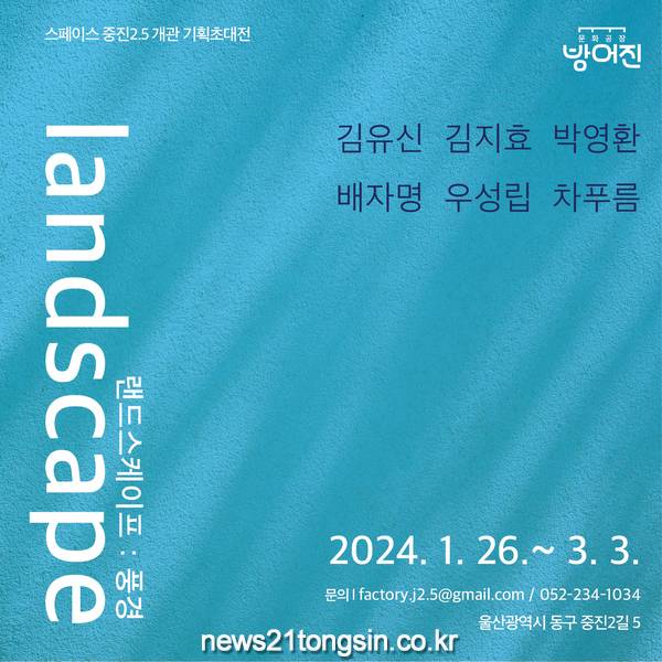 (뉴스21통신/임정훈기자) = 울산 동구 방어진활어센터 내 조성된 문화공간인 ‘문화공장방어진’은 1월 26일부터 오는 3월 3일까지 2024 문화공장방어진 개관 기획 초대 전시 ‘랜드스케이프 : 풍경 (landscape)’을 연다.