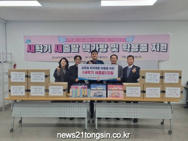 (뉴스21통신/최원영기자)=야음지구대(대장 박영기)는 SK이노베이션 울산 CLX, 생활안전협의회(회장 정희락)와 함께 설명절 맞이 취약계층 아동들을 위한 ‘새학기 새출발’ 지원사업을 26일 울산남구 가족지원센터에서 실시하였다.
