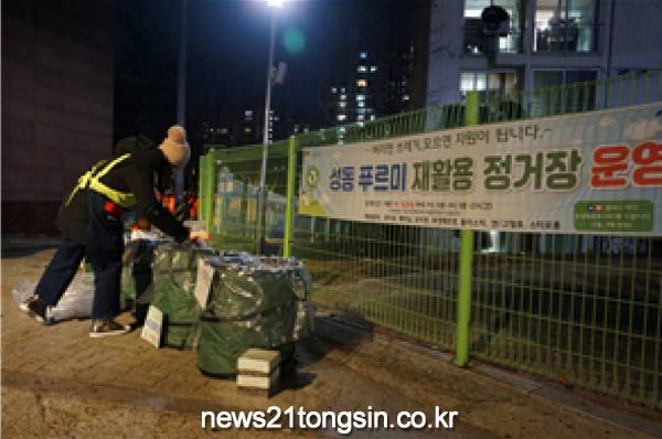 ▲ 사진=성동구청서울 성동구는 주택가 쓰레기 혼합 배출 감소 및 재활용품 분리배출 문화개선을 위한 자원순환사업인 '성동 푸르미 재활용정거장'을 올해 117개소로 확대 관리한다.
