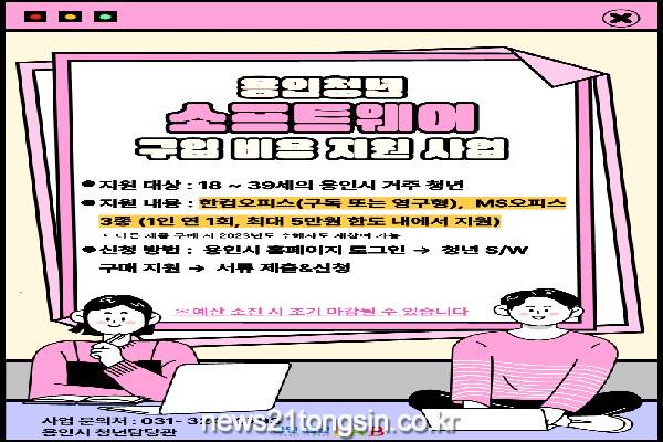 ▲ 사진=용인시청용인특례시는 청년들의 구직활동과 자기 계발을 돕고 경제적 이유로 불법 복제 프로그램을 사용하는 것을 방지하기 위해 소프트웨어 구입비를 1인당 최대 5만원까지 돕는다고 29일 밝혔다.