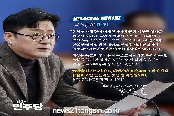 홍 원내대표는 "정치의 본령은 국민의 생명과 안전을 지키는 데 있는데, 그 생명과 안전을 지키는 데 소홀히 하고 책임이 있는 정부가 진상 규명을 가로막고 있는 것이다."라고 말했다.