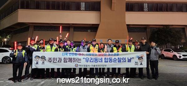 이날 합동순찰은 주민 참여 치안 활성화를 위한 것으로 여수시 학동에 있는 번화가 중심 인파 밀집 예상 지역을 가시적 위력순찰 함으로써 여수시민의 체감 안전 향상에 중점을 두었다.
