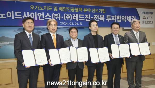 정헌율 익산시장은 "오가노이드와 세포 기반 배양인공혈액을 활용한 치료제 생산 선도 기업 투자를 통해 익산이 바이오 산업도시로 자리매김 할 수 있는 구심적 역할을 수행할 것"이라며 "바이오 산업에 대한 경쟁력을 강화하고 기업과 인재가 모여드는 도전과 기회의 도시로 발돋움하겠다"라고 말했다.