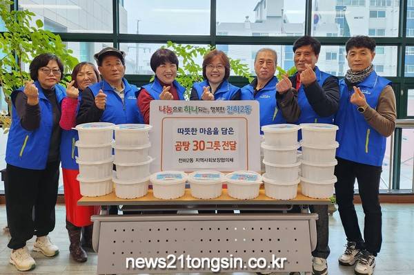(뉴스21통신/임정훈기자)울산 동구 전하2동 지역사회보장협의체(위원장 심명희)는 2월 5일오늘 동 행정복지센터를 방문하여 협의체 위원들이 손수 준비한 보양식(곰탕) 30세트를 전달했다.