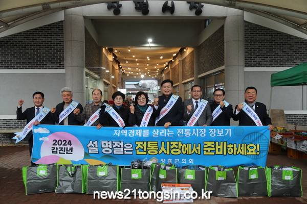 장흥군의회 전체의원은 6일, 지역 전통시장인 장평시장을 찾아 설 맞이 명절 장보기 행사를 계속했다.