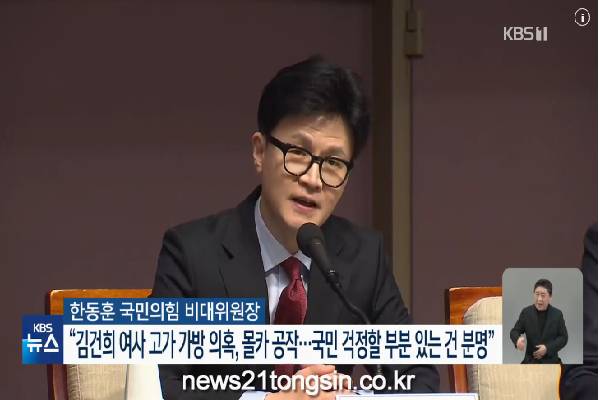 한동훈 국민의힘 비상대책위원장은 김건희 여사의 '고가 가방' 의혹을 "저열한 몰카 공작"으로 규정하고, "민주당 정부 당시 영부인에 대한 여러 가지 의혹이 훨씬 더 가득했다."고 말했다.