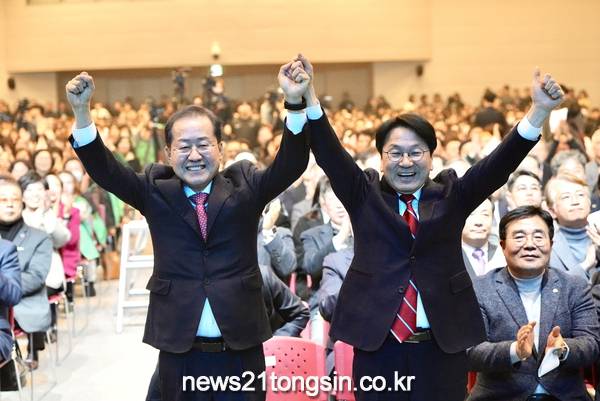 ▲ 사진_달빛철도특별법 국회통과 축하행사 [뉴스21/장병기 기자] 광주시와 대구시의 끈끈한 ‘달빛동맹’이 하늘길‧철길을 넘어 ‘남부거대경제의 길’을 튼다.