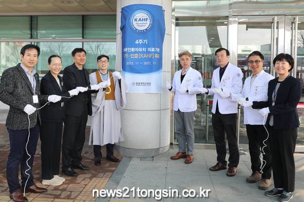 원광대학교병원(병원장 서일영)이 7일(수) 외래 1관 현관에서 ‘외국인 환자 유치의료기관 평가인증(KAHF)’ 현판식을 가졌다고 밝혔다.