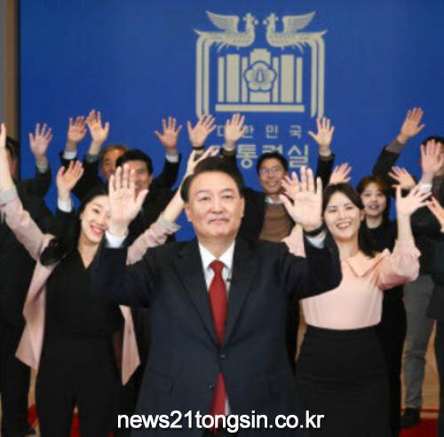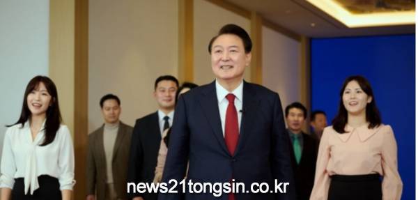 영상 첫 부분에는 윤 대통령과 이관섭 비서실장이 등장한다. 이 실장이 “설 연휴에 일정이 꽤 많으시다”고 말하자, 윤 대통령은 “설 연휴도 제대로 못 쉬는 국민들도 많은데”라며 “우리 실장님 고향 가셔야지”라고 말한다.