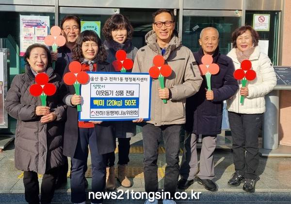 (뉴스21통신/임정훈기자) = 울산 동구 전하1동 행복나눔위원회(위원장 권기정)는 2월 7일 오전 9시 전하1동 행정복지센터에서 백미(20kg) 50포를 관내 저소득층에게 전달하였다.