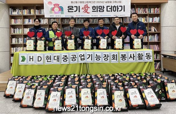 (뉴스21통신/임정훈기자) = HD현대중공업 기능장회(회장 이성구)는 지난 2월 6일 오후 울산동구종합사회복지관(관장 한영섭)에 방문하여 동구지역 취약계충 150세대에 설명절 지원사업 ‘온기愛 희망 더하기’ 꾸러미 전달 봉사활동을 진행했다.