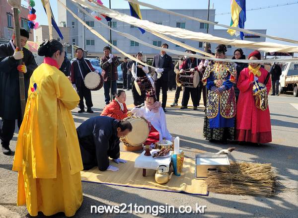 이날 열린 영신제에서는 마을 주민과 관광객 200여 명이 참여해 포구에서 만선에 깃발을 꽂는 용왕제를 시작으로 영신당으로 이동해 제를 올렸다.