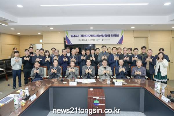 원주시와 (사)강원이모빌리티산업협회는 7일 시청 7층 회의실에서 자동차부품 및 이모빌리티 기업의 산업 경쟁력 강화를 위해 '원주시-강원이모빌리티산업협회 간담회'를 열었다.