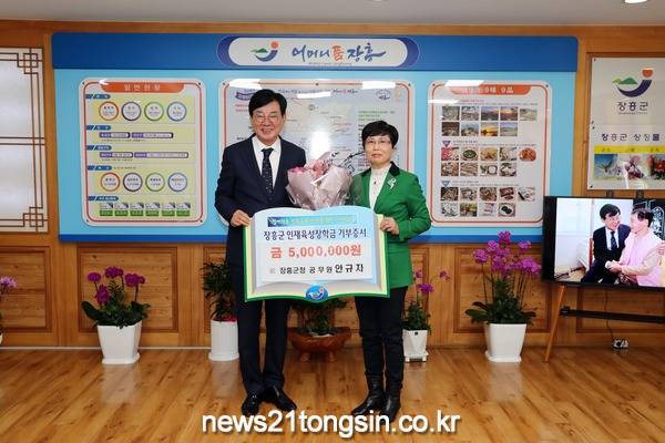 장흥군인재육성장학회는 13일 안규자 전 관산읍장이 500만원, 이재현 그린사업개발 대표가 300만원을 기부했다고 남겼다.