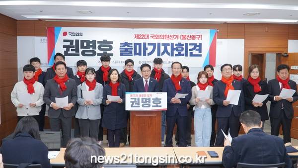 (뉴스21통신/임정훈기자) = 권명호 국회의원(국민의힘, 울산 동구)은 2월 15일(목) 13:30 울산광역시의회 프레스센터에서 기자회견을 갖고 다가오는 4월 10일 제22대 국회의원선거 출마를 공식화 했다.