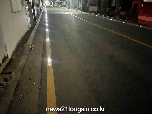 내장상동은 야간·우천 시 잘 보이지 않는 차선의 시인성을 개선하기 위해 태양광 LED 도로표지병을 설치했다.