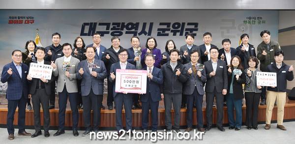 지난 15일 김진열 군위군수를 비롯한 군위군청 직원 50명이 동참한 고향사랑기부금 500만원을 경북도청에 기탁했다고 전했다.