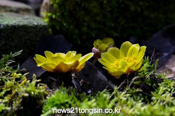 따뜻한 날씨가 연일 이어진 14일 보문산에 복수초가 봄을 알리듯 고개를 내놓았다.