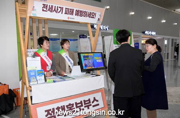 ▲ 사진-전세사기 피해예방 홍보부스[뉴스21/장병기 기자] 전세사기 피해가 청년층에 집중됨에 따라 광주시는 청년일자리사업 행사장에서 전세사기 피해예방 홍보활동을 벌였다.