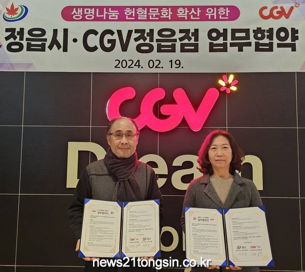 정읍시와 CGV정읍점은 19일 CGV정읍점에서 지역사회 생명나눔 헌혈문화 확산을 위한 업무협약을 체결했다.